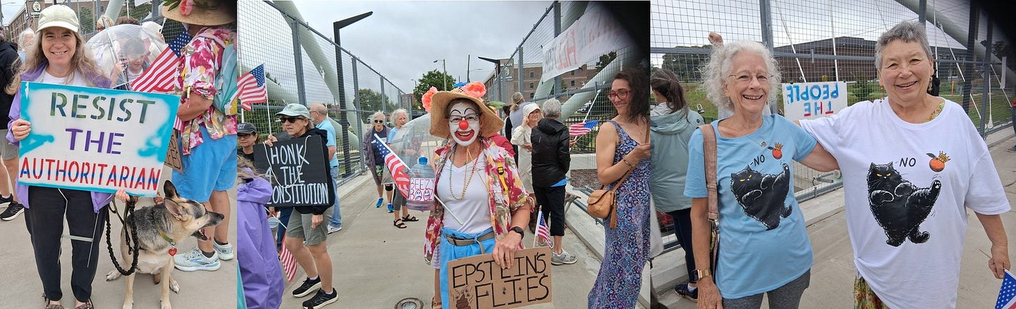 At the Green Street pedestrian bridge above Salem Parkway. We have crowds, but we need more! This is, I guarantee, the most fun protest in town!